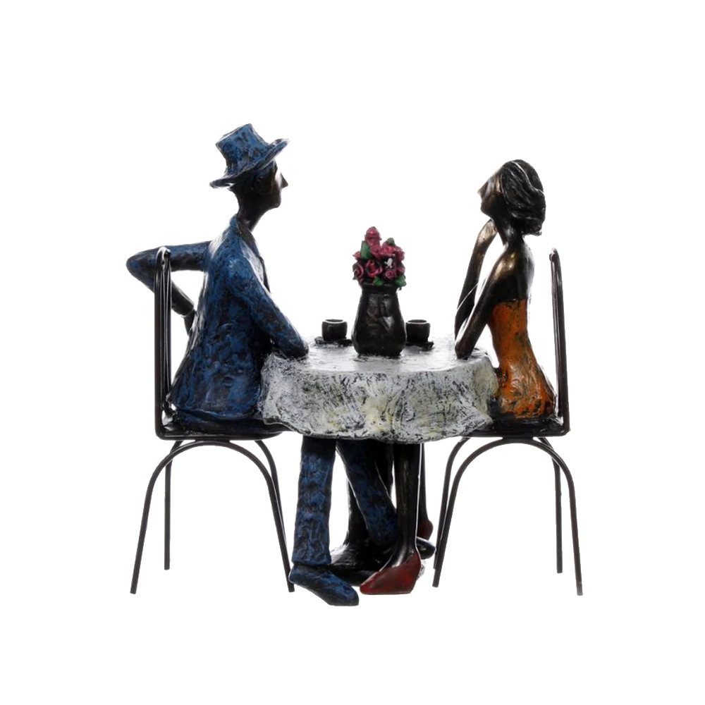 דגם “קפה מילאנו” הוא פסל צבעוני ומלא רומנטיות המנציח רגע של זוג מגונדר שיושבים יחד על שולחן עם זר פרחים ורגלים משולבות