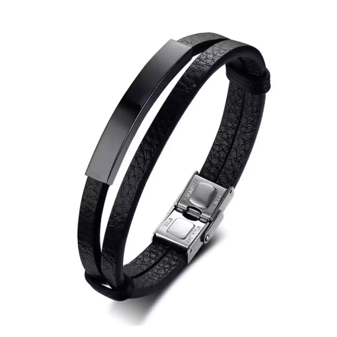 צמיד יד לגבר בשילוב עור ומתכת בצבע שחור.
